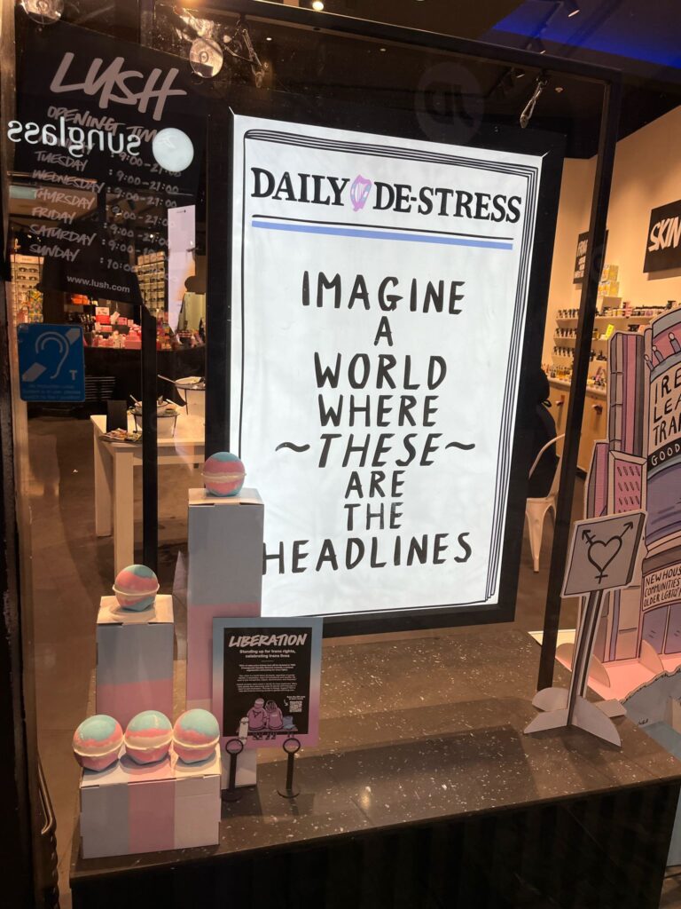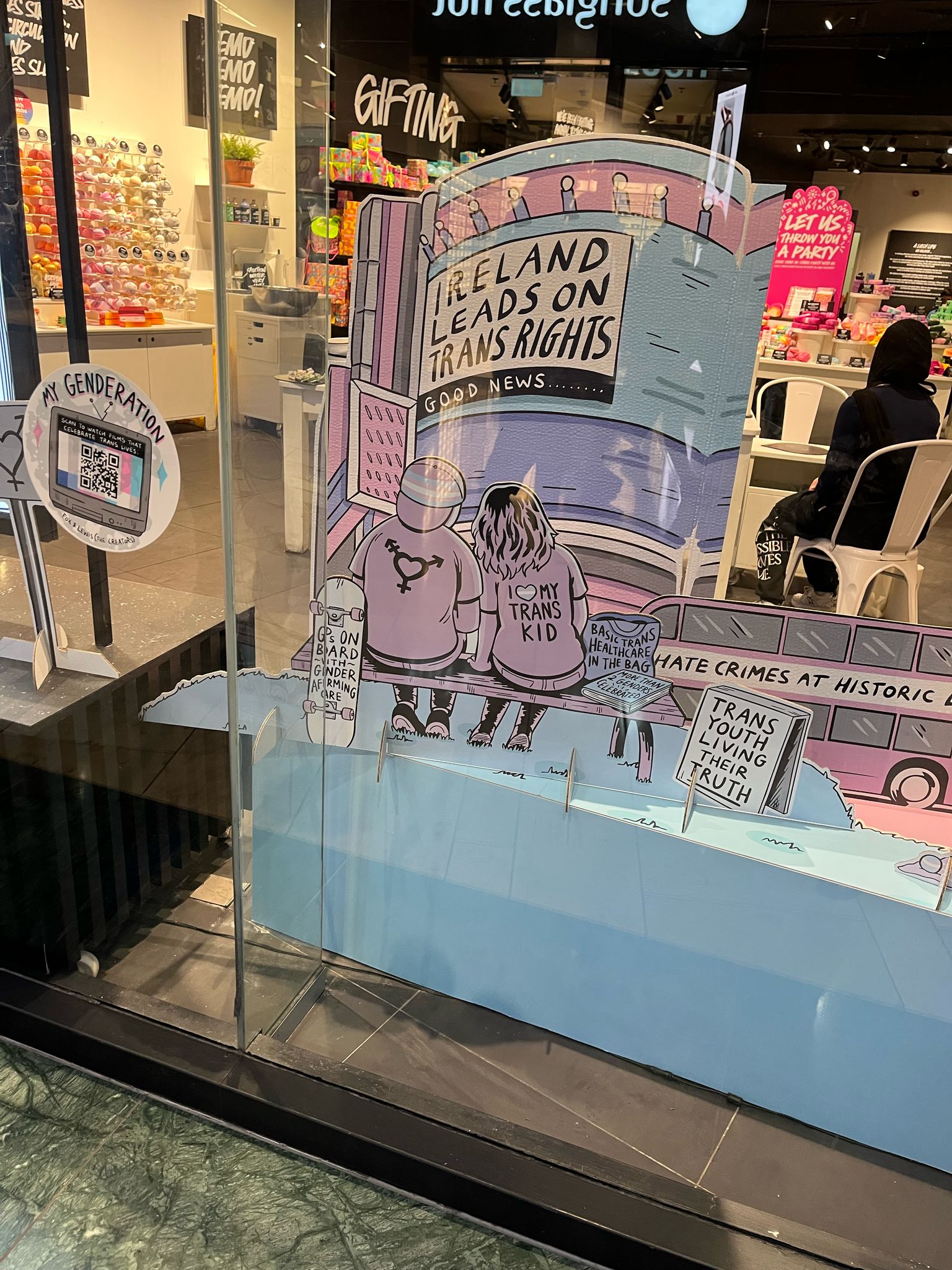 At Dundrum Town Centre in Dublin, and in all 101 Lush stores across the UK and Ireland, the cosmetics retailer Lush is using its brand power to market activist-led gender identity narratives to children and young adults.