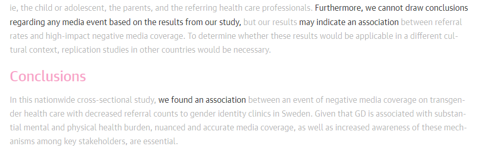This paper (Association of Media Coverage on Transgender Health With Referrals to Child and Adolescent Gender Identity Clinics in Sweden) is rather interesting. It was published a few days ago and made headlines right away, but I hadn’t read it until now.