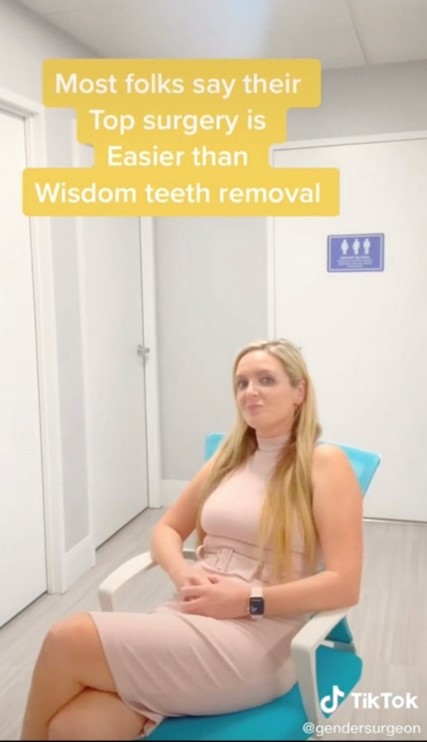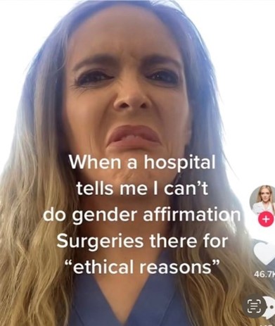Dr Gallagher advertises surgeries for people with gender issues on TikTok where her account has over 200k followers. TikTok is a social media platform used mostly by younger people, the largest age group using TikTok is 10-19 years of age. In one TikTok video, Dr Gallagher says “Most folks say their top surgery is easier than wisdom teeth removal”. “Top surgery” is a euphemism for a double mastectomy which is the removal of all breast tissue. In another video, Dr Gallagher makes a disturbed face alongside the words “When a hospital tells me I can’t do gender-affirming surgeries there for ‘ethical reasons’”. Since meeting Minister Harris in 2019, Dr Gallagher has been reported to the Federal Trade Commission (FTC) for alleged false promotion of services to under-18s.