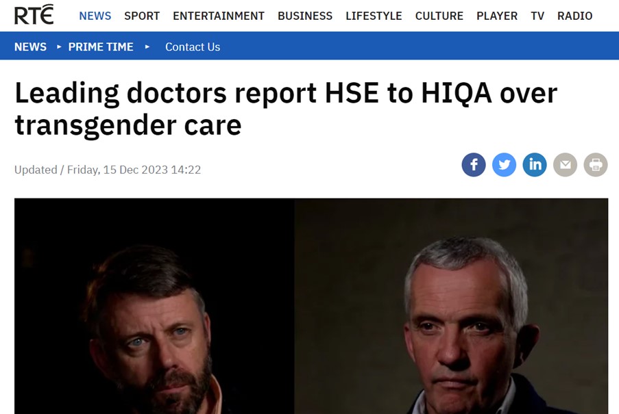 On Friday the 15th of December 2023, the Irish national broadcaster Raidió Teilifís Éireann (RTÉ) broke the news that the two most experienced clinicians involved in “transgender healthcare” in Ireland have taken the unprecedented step of making a formal complaint to the Health Information and Quality Authority (HIQA) about the Health Service Executive’s (HSE) treatment of children and young people with gender identity issues. The HSE provides public health and social care services to everyone living in Ireland, it is the equivalent of the UK’s National Health Service (NHS).