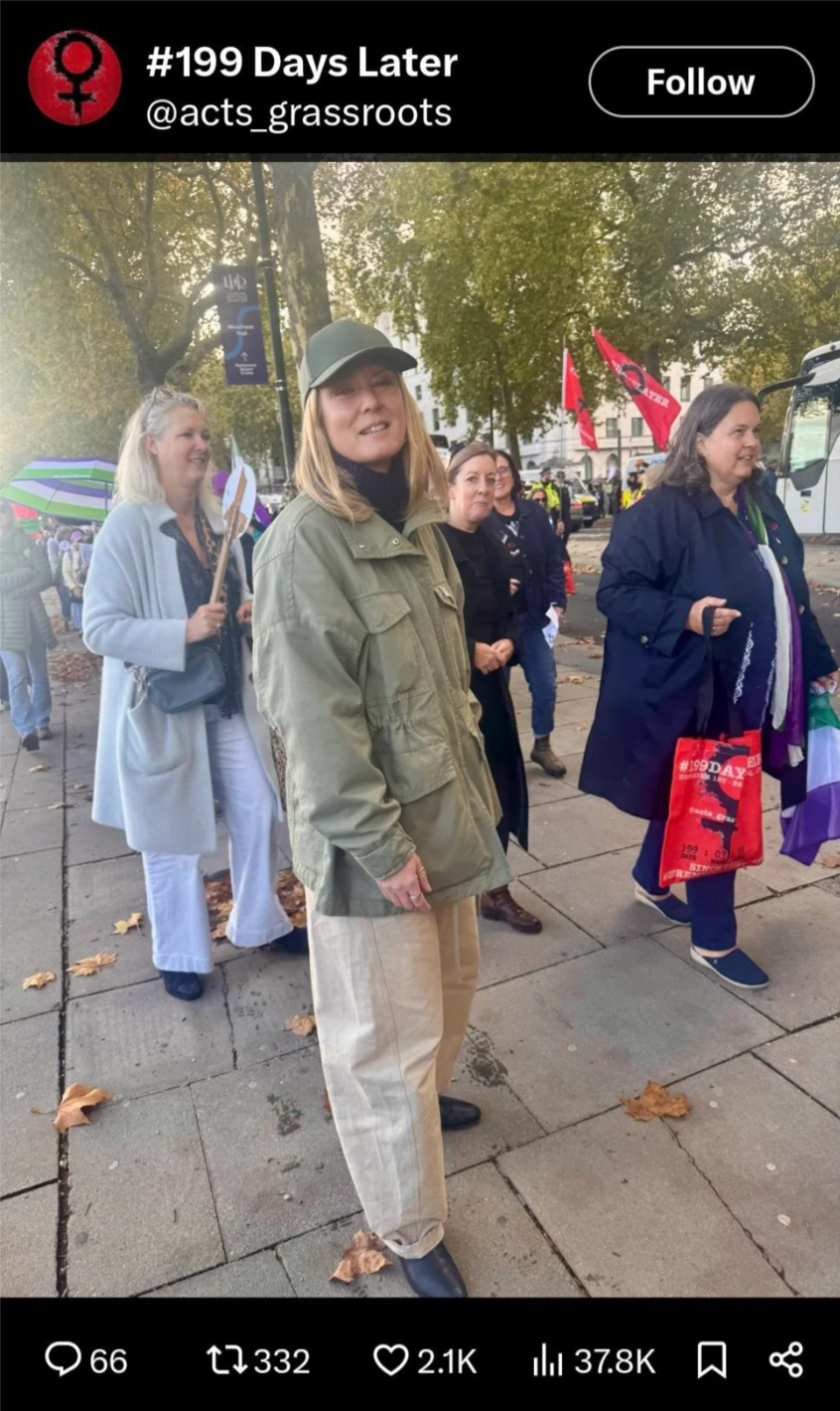 I felt this shift in a specific moment. Róisín Murphy, who had faced industry backlash for stating the reality of biological sex, appeared quietly at 199 Days, the protest marking the number of days since the Supreme Court ruling. She did not arrive with the press. She didn’t perform. She just showed up. She was one of us. In a culture where silence has become the default, physical presence means something. Solidarity is not abstract. It is a body standing beside you.