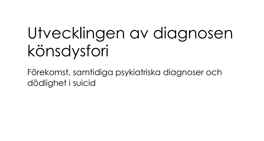 This is an English translation of the Swedish report published by Socialstyrelsen (The National Board of Health and Welfare) in February 2020, titled ‘Utvecklingen av diagnosen könsdysfori’. The report examines the prevalence of gender dysphoria in Sweden, co-occurring psychiatric...