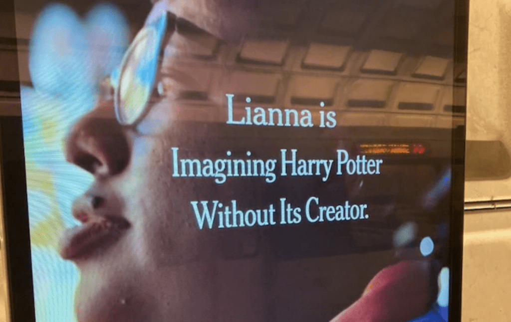 ‘Lianna is Imagining Harry Potter Without Its Creator’, crows a New York Times advert in a Washington metro station. Lianna, who may just be a stock photo, gazes into middle distance, inspired by the thought of a world where women – presumably including herself – can be memory-holed for wrongthink.