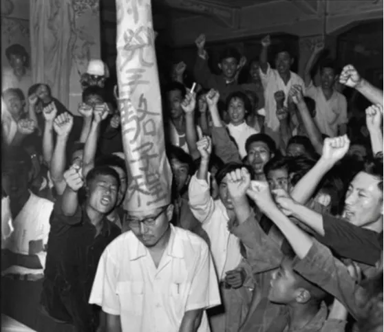 A schoolteacher, respected, grey-haired, known in his community, is hauled onto a stage by his students in a scene similar to the one depicted in this photo. They jam a dunce cap on his head, hang a placard around his neck: “Counter-Revolutionary”. They jeer, slap, and spit. There is no trial. No defence. His “crime”? Failing to repeat the right slogans with enough zeal. The crowd roars.
