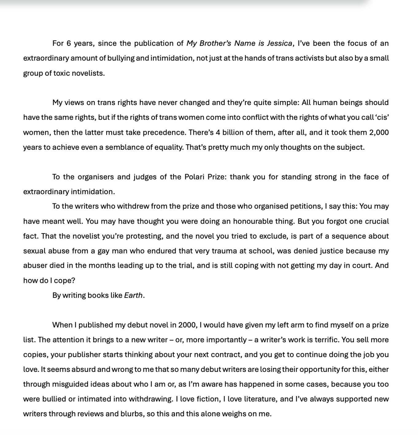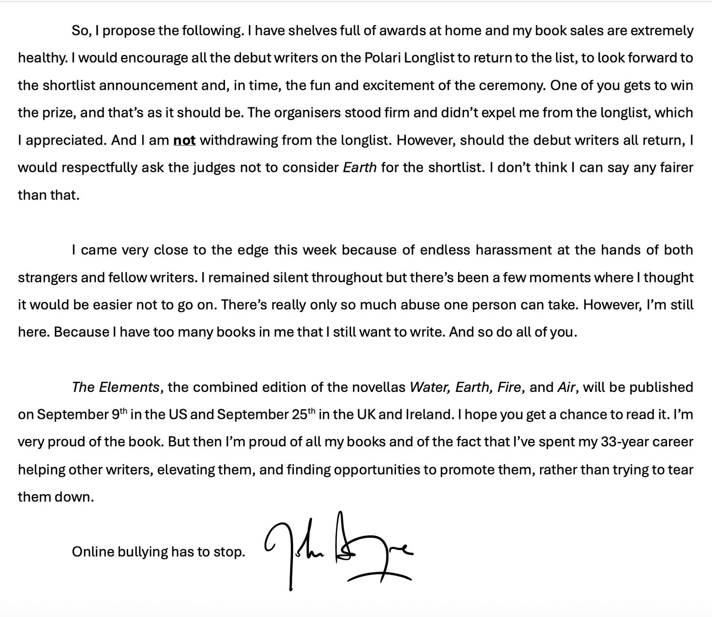 Irish author John Boyne’s inclusion on the 2025 Polari Prize longlist for his novel, Earth, sparked backlash due to his gender-critical views and advocacy for women’s rights. Over 800 authors and publishing professionals demanded his removal, with half the nominees and two judges withdrawing. The Polari Prize paused the competition to review its policies. Boyne, aiming to create space for debut authors, urged them to reconsider withdrawing, offering to remove Earth from shortlist consideration if they returned, while condemning online bullying. Readers can see his gracious statement about the controversy below.